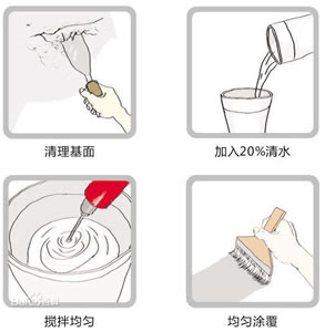 5、冷施工,操作安全,施工方便,可直接噴、涂、刷、刮在墻面上。