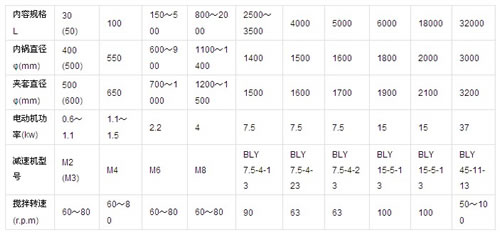 蒸汽加熱反應釜廣泛的應用于醫藥、化工、塑料、橡膠、建材、食品等行業,具有加熱迅速、耐高溫、耐腐蝕、無環境污染、無需鍋爐自動加溫、使用方便等特點。 技術參數
