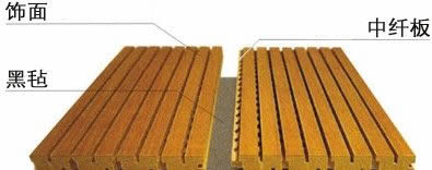2構造及規格 飾面:木皮,三聚氰胺涂飾層或者噴漆。 吸聲薄氈:顏色為黑色,粘貼在吸聲板背面,具防火吸聲性能。 板條寬度:128mm。 板條長度:最長2440mm。 允許公差:寬度為0.1MM,長度為2MM。 拼版: 板條長邊根據實際需要做成90度角的企口和凹口來拼接。 木質吸音板的截面結構: 吸音板的原理:吸音板的表面有很多小孔,聲音進入小孔后,便會在結構有點像海綿的內壁中胡亂反射,直至大部份聲波的能量都消耗了,變成熱能,達到了隔音的效果。 吸音板內包含著許多細小的空隙,這些空隙對聲波產生吸音效果,特別是對頻率高于600 Hz的聲波效果十分顯著。