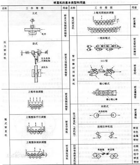 簡要介紹 英文名:straightening 對金屬塑性加工產品的形狀缺陷進行的矯正,是重要的精整工序之一。軋材在軋制過程或在以后的冷卻和運輸過程中經常會產生種種形狀缺陷,諸如棒材、型材和管材的彎曲,板帶材的彎曲、波浪、瓢曲等。通過各種矯直工序可使彎曲等缺陷在外力作用下得以消除,使產品達到合格的狀態。 矯直分類 矯直可按被矯軋件的溫度分為熱矯直和冷矯直。熱矯直一般在650~1000℃進行,只用于中厚板。矯直溫度是熱矯直的重要的參數之一。矯直溫度過高,軋件在隨后的冷卻中還可能因冷卻不均產生瓢曲;矯直溫度過低會使矯直抗力增大,矯直困難。冷矯直廣泛用于矯直各類型鋼和鋼管,也用于中厚板的補充矯直。熱軋型材的冷矯直都在軋材冷卻后進行。為保證矯直質量和改善勞動條件,合理的冷矯直溫度應低于200℃。當矯直機布置在軋制作業線上時,常因鋼材冷卻時間不夠,矯直溫度過高(一般在200~250℃以上)而達不到預期效果,影響矯直質量。多數鋼材只矯直一次,只有不易矯直且彎曲度要求嚴格的產品,需要進行兩次或兩次以上的矯直。 矯直方法 矯直方法有壓力矯直、輥式矯直(包括直輥矯直和斜輥矯直)、張力矯直和拉伸彎曲矯直。拉伸彎曲矯直的原理是,當帶材在小直徑輥子上反復彎曲時給帶材施加拉力,使帶材產生彈塑性延伸,從而將帶矯直。拉伸彎曲矯直機組一般用在連續作業線上矯直各種帶材,包括高強度、極薄帶材。這種機組也用于連續酸洗板冷卻后還可采用平整的方法減少板帶的厚度差和矯作業線上的帶材機械破鱗,以提高酸洗速度。矯直機的直板形。此外對一些特殊產品要采用特殊矯直,如矯直基本類型和它們的主要用途見表。冷軋薄板或熱軋薄薄壁和特薄壁管使用轉筒矯直(見圖)等。